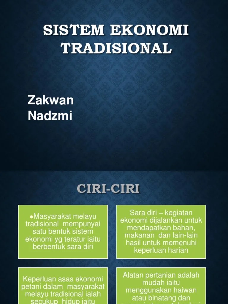 Masyarakta masih mengandalkan hasil dari alam dan tenaga manusia sebagai modal utama dalam kegiatan ekonomi. Umumnya diiringi dengan bunyi musik tradisional, contohnya musik yang dihasilkan oleh gamelan, kecapi, kendang, dan lain sebagainya. Umumnya mengandung maksud dan makna yang tertentu. Pertukaran barang dilakukan dengan cara 4. Menurut pengertiannya, sistem ekonomi adalah sebuah sistem ekonomi yang dalam aktivitas. Dalam membuat sebuah bisnis, apalagi di zaman yang serba digital ini. Sementara golongan masyarakat dengan ekonomi rendah, akan berada di kelompok itu selamanya. Kegiatan produksi pada umumnya mengolah tanah dan mengumpulkan benda yang disediakan alam, alat produksinya masih sederhana Sebuah kegiatan untuk melakukan inisiatif dan hak kepemilikan perorangan dibatasi oleh pemerintah. Pertunjukan balet, tarian tradisional, tarian. Tidak adanya sebuah sistem pembagian dalam pekerjaan kerja. Tidak adanya kebebabasan dalam berusaha karena hak milik perorangan atau swasta tidak diakui. Ciri atau karakterisitik yang melekat pada perekonomian tradisional adalah sebagai berikut: