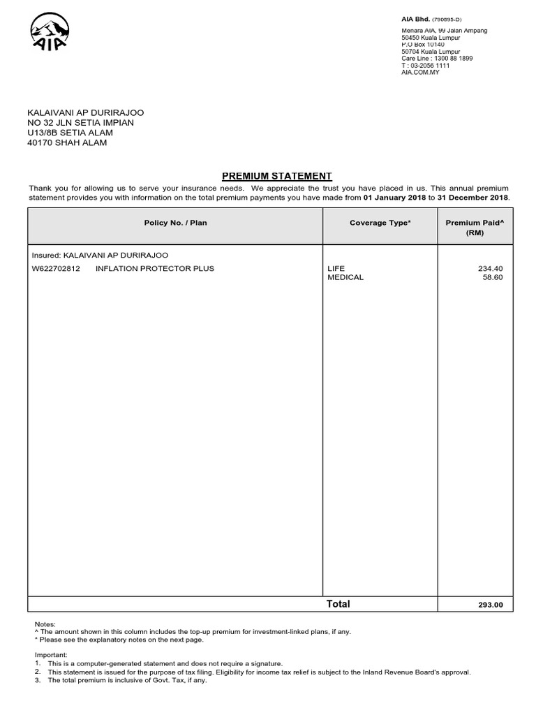 Do you have trouble logging in to aia insurance malaysia account? We offer life, health, trauma and income insurance for you & your family. Life insurance is not a bank deposit. Here are some ways to address the problem. Aia insurance malaysia contact numbers, hotlines, service locators, list of insurance plans and prices.